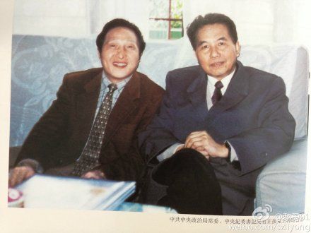原中共中央政治局常委吴官正与被指是江泽民的“御用气功大师”王林的合影照,被王林保存在写真集中,并对照片的注脚中却十分明确地标明了吴官正政治局常委身份。