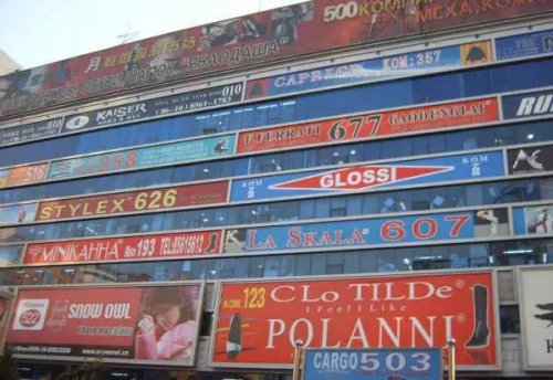 在这里看不到展示的商品,也没有售货员没完没了的叫卖声,路过的人都弄不清楚这里的商家都在卖什么东西,商场里所有的店铺门上全会挂着白色帘子。商户挂帘上中文就写“谢绝参观”,外文就写“欢迎光临”。这条500米的小街道叫做雅宝路,面向以俄罗斯为主的国际倒爷,是对东欧服装贸易的代名词。