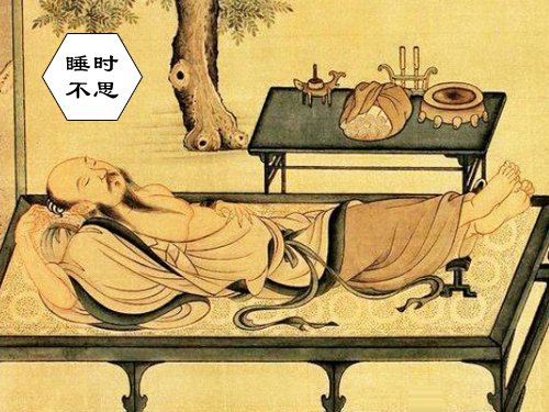 “视此身如无物,或如糖入于水,先融化大脚趾,然后是其他脚趾,接着脚、小腿、大腿逐渐融化,最后化为乌有,自然睡着”。“先睡心,后睡眼”这是入睡时的理想精神状态。很多时候,失眠源于入睡时有挥之不去的杂念。